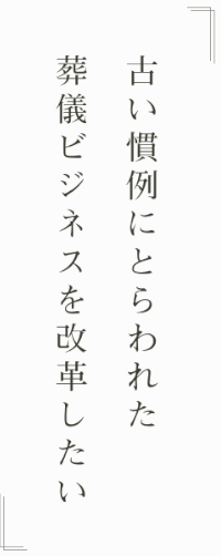 開業当初、驚いたのは「高齢化も進み、葬儀の後に生活が苦しくなってしまうご遺族が増えている」という現実でした。昔からの慣例による、高額な費用の葬儀が大きな負担になってしまっていたのです。でも故人を想う心故でしょうか。開業まもない私に対しても不満など語られることなく、どのご遺族からも感謝の言葉をいただくばかりで、私の方が励まされるほどでした。